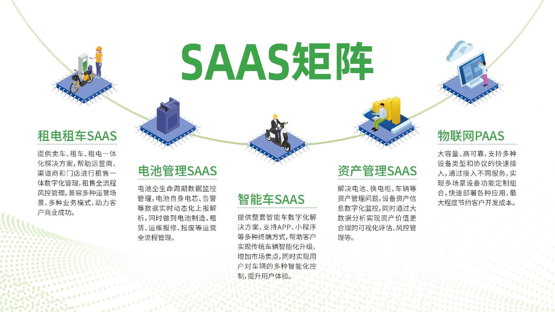 本次展会,行运兔科技重点展示了以SaaS技术为核心+硬件的技术产品,通过数字化技术聚焦短出行产业互联网服务,形成以租电租车SaaS、电池管理SaaS、智能车SaaS、资产管理SaaS、物联网PaaS等平台为主体的SaaS矩阵,民用换电柜、商用换电柜等智能设备产品,全面彰显出行运兔在换电领域的技术研发与产品应用方面的深厚实力。